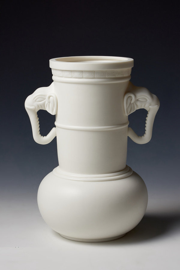 复制的白釉象耳弦纹尊
