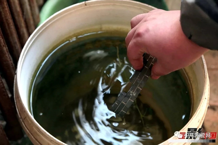 图为何青瀚从水中捞出一块浸泡许久的微型砖雕城墙。