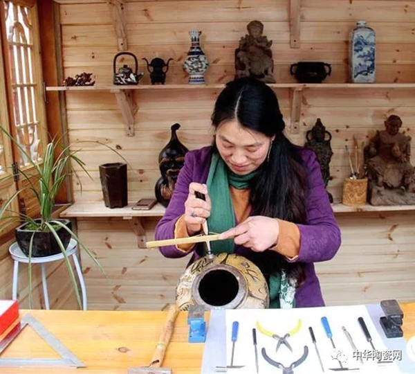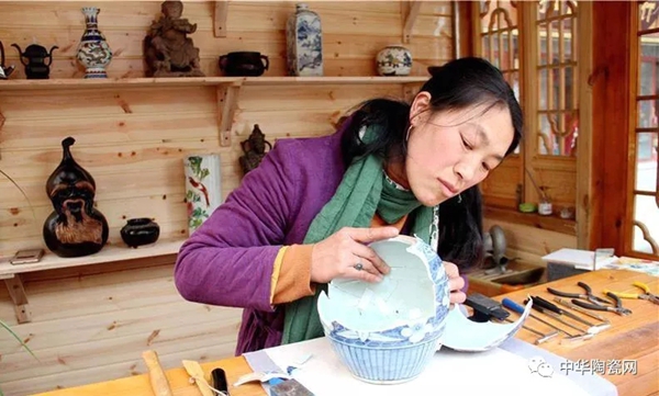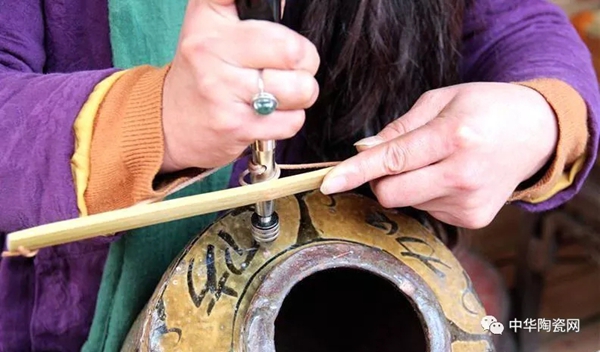 首先是要将破损的瓷器碎片拼接好,然后用弓和金刚钻[收起] 湖北十堰市武当山特区民间艺人郑艳芳正在用传统工艺——“锔瓷”对瓷器进行修复。