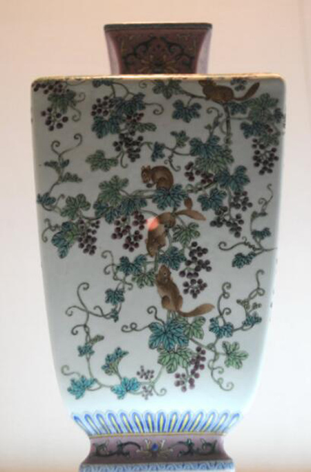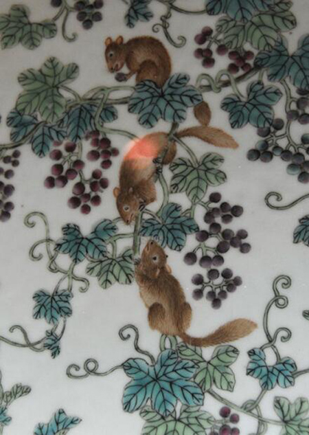 粉彩松鼠葡萄纹瓷方尊(局部细节图) 清乾隆 国家一级文物