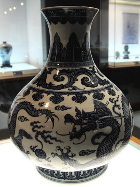 青花赶珠龙纹大瓶颈部细节 清雍正