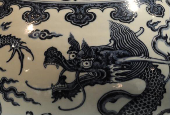 青花赶珠龙纹大瓶(局部细节) 清雍正