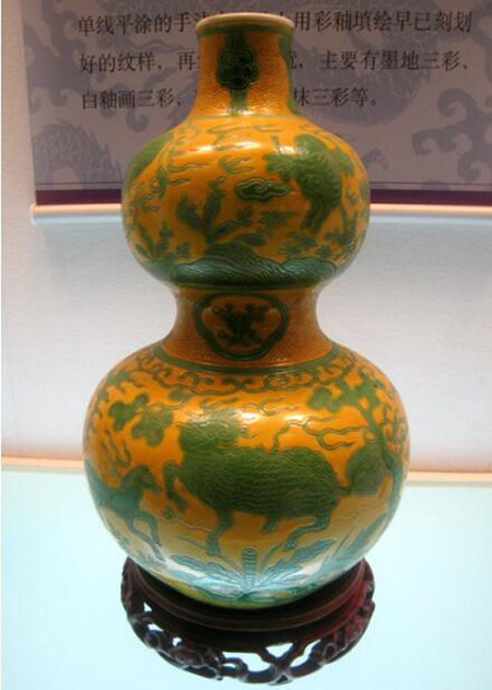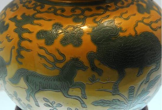 黄地绿彩瑞兽纹葫芦瓶(局部细节) 清康熙
