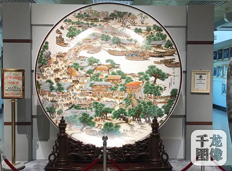 潮州中国瓷都陈列馆馆是广东省内规模最大、数量最多、品种最全、档次最高的陶瓷专业展馆。图为《清明上河图》大挂盘。千龙网记者 查甜甜摄