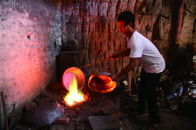 烧制铜锅(光明日报图片)
