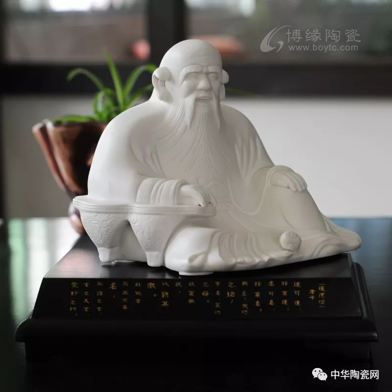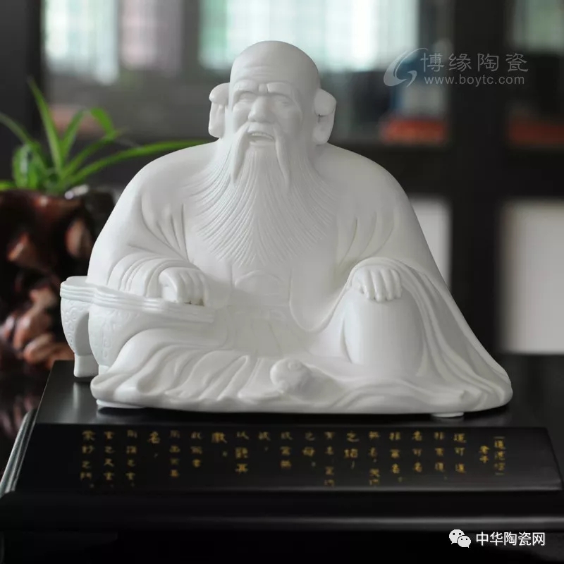 作品老子白发飘然,稳如山岳,左手扶膝,右手凭几,垂耳飘髯,指能弹物,目光炯炯,独具超尘脱俗,仙风道骨神韵。人物的面部刻画得非常传神,衣纹的处理也颇具动感,整个人物给人一气呵成之感,形象精致生动。整座白瓷佛像神态浩然,和蔼可亲,炳焕生光,充满魅力,是一件上乘作品。