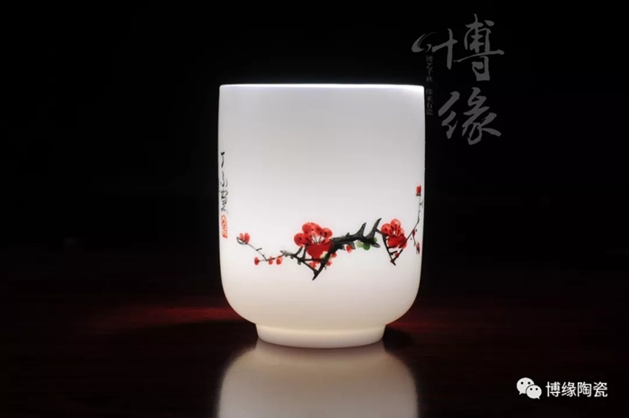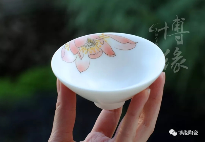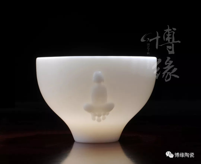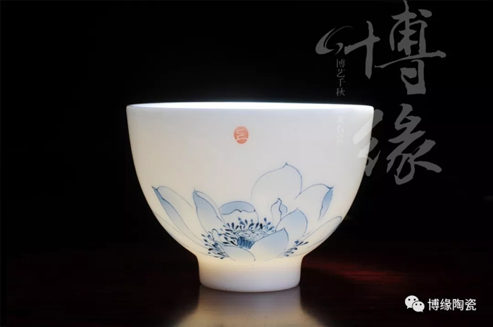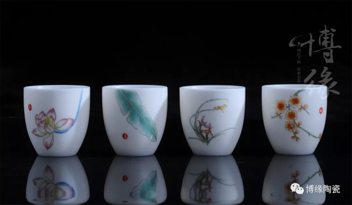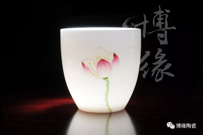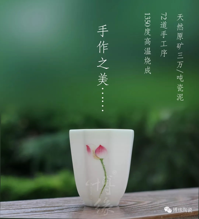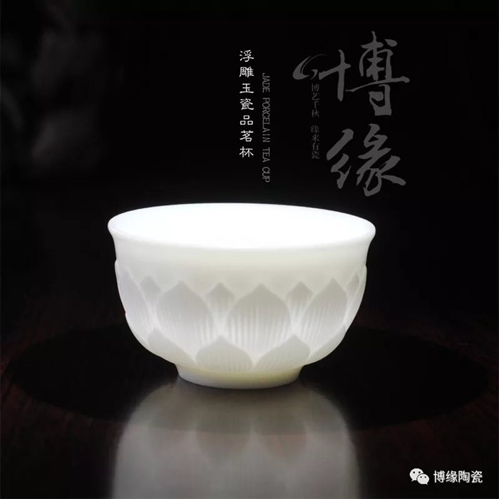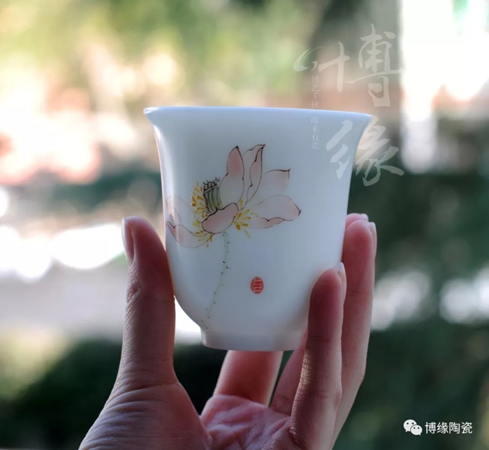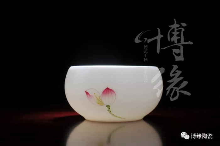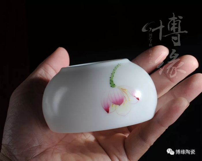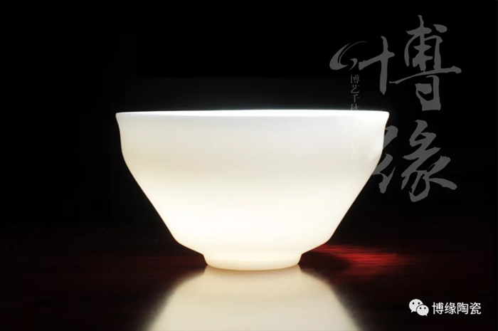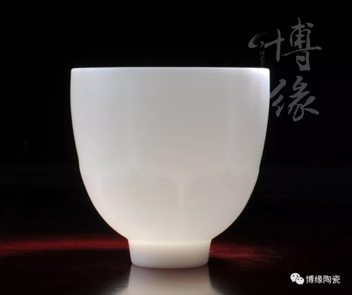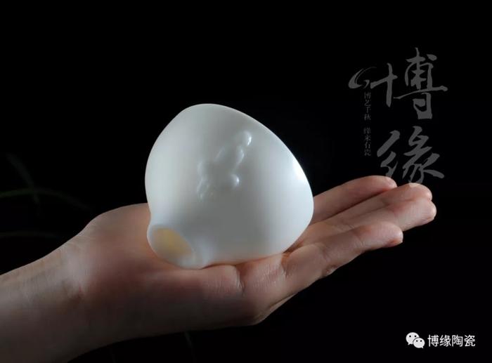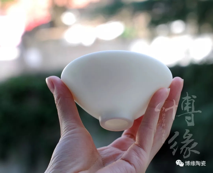 博缘的玉瓷杯,不上釉的玉瓷杯瓷质容不得半点瑕疵,是经过层层提纯挑选出来的,成型率低,因此价格颇高。