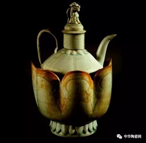 注子坐于注碗中以后,肩以下均没于碗体之中,肩以上露出碗外,可以看到前翘的注嘴与后仰的高把手和直口及盖,以及突出盖上的蹲狮。