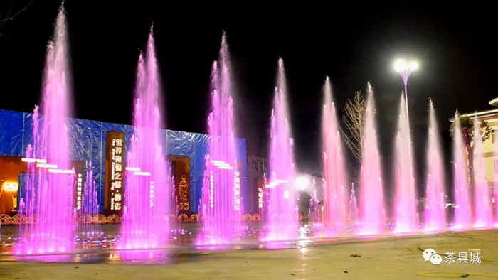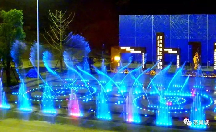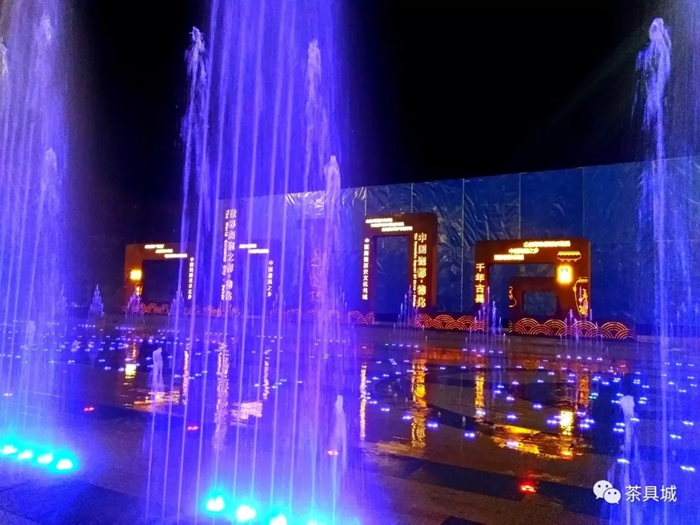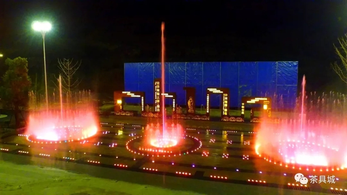 中国茶具城的音乐喷泉于近日建成投用,呈现出“瓷光水色交融,动静结合相宜”的优越环境。