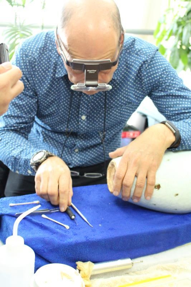 以陶器为例,钻取约100毫克的少许样品粉末即足够进行测试。为了保持测试高度准确,取样需要在暗室红光下进行。取样部位及数量取决于器物的大小及完整与否。瓷器要用涂有金刚砂、直径4毫米之空心钻,在冷水冲洗下取样。样品通常取自无釉处,如器底或器足内壁。所有样品密封后送至英国牛津检测中心数据库之化验室进行测试。