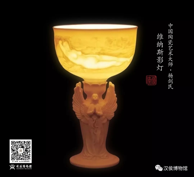 杨剑民,从事陶瓷事业30年,在创作中,不断吸取陶瓷工艺实践感性知识,丰富自己的艺术内涵与素养。他在长期的设计创作实践中,将造型工艺与传统风格技法高度融汇结合,不断总结改进,使得一件件各具特色的日用、工艺陶瓷作品不断问世,并于历次展评会上屡获高奖。杨剑民的作品刻意创新,独具风格,不与类同,不落俗套。他的艺术底蕴浑厚,造诣深邃,创作思路开阔,构思新颖,形式多变,作品外秀内蕴,典雅大度,为国内外人士所推崇。《维纳斯影灯》《八仙过海》《孔雀花瓶》等,都成为博物馆级的典藏之作。