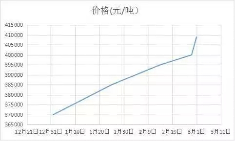 春节过后,作为陶瓷色料的主要原料之一,氧化钴可谓是一飞冲天。据长江有色金属网数据显示,氧化钴年前年前报价为38万元/吨左右,而春节后则已达到41万元/吨。而到了陶瓷色料企业,报价则更高。