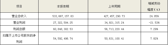 上市公司股东的净利润,与同期基本持平,变动幅度在-10%至10%之间。报告期内,公司预计非经常性损益对归属于上市公司股东的净利润影响约为477.65 万元,去年同期为278.32万元。