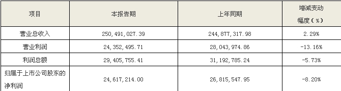 报告显示,广东新劲刚新材料科技股份有限公司实现营业收入25,049.10万元,同比增长 2.29%;但营业利润2,435.25万元,同比下降了 13.16%;净利润2,461.72 万元,同比下降8.20%;