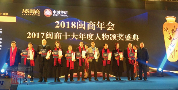 2月27日,“中国华信·2018闽商年会暨2017闽商年度人物/闽商新锐人物颁奖盛典”在福州举行,德化陶瓷艺术大师到场助阵,他们的陶瓷作品作为年会奖品和礼品闪亮登场。