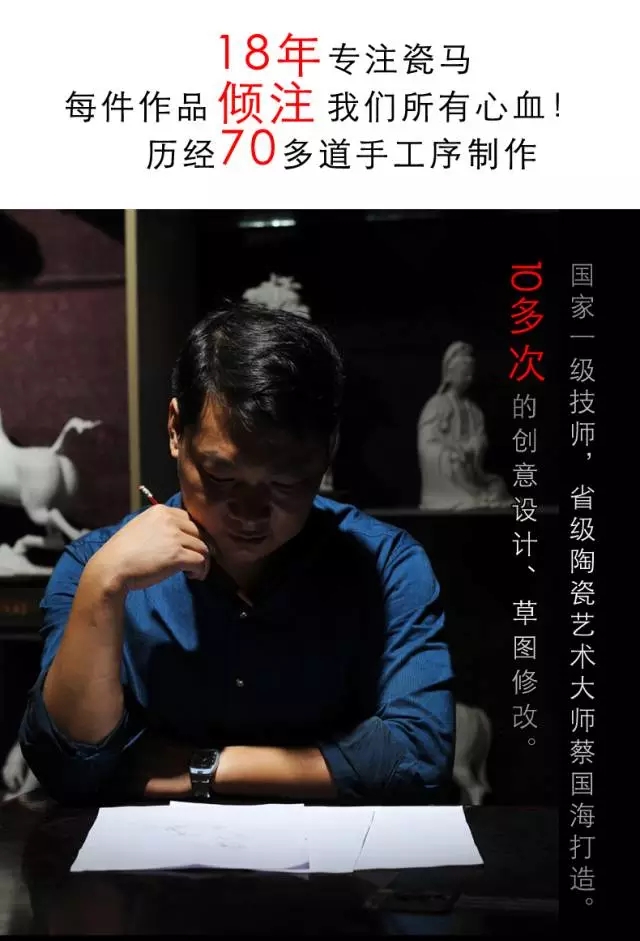 作品是省大师设计制作,大师18年专注瓷马,手工白瓷瓷雕匠心打造,其造型非凡独特,经1330多度高温烧制,烧制难度大,成品率低,作品是家居、办公室、收藏、鉴赏的好选择。