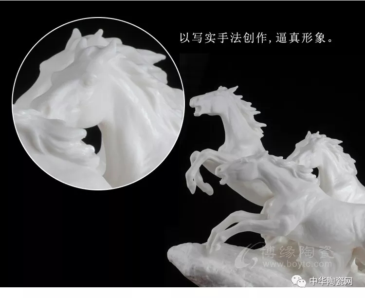 作品是省大师手作作品,作品采用德化上等白瓷瓷泥,瓷质洁白细腻,并采用写实的手法追寻自然美,近乎苛刻的制造工艺与较低的成品率,彰显中国白瓷瓷马的珍贵性。