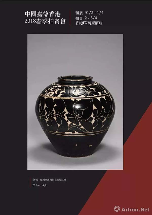 Lot 141 金/元 黑釉剔花牡Lot 141 金/元 黑釉剔花牡丹纹罐 28.5 cm 高 估价: HK$ 800,000 - 1,000,000 来源:香港私人收藏,购于1980年代