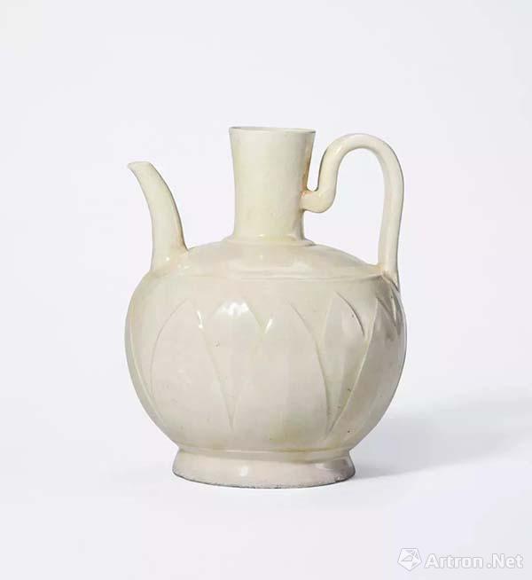 Lot 132 五代/北宋 白釉刻划卷叶莲瓣纹执壶 18.6 cm 高 估价: HK$ 1,000,000-1,200,000 来源:1980年5月购于日本,附票据