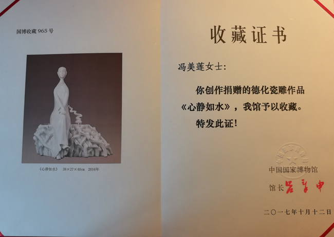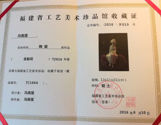 作品《含胎花》被福建省工艺美术珍品馆收藏