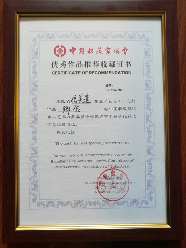 作品《乡愁》中国收藏家协会工艺品收藏委员会评审为优秀作品