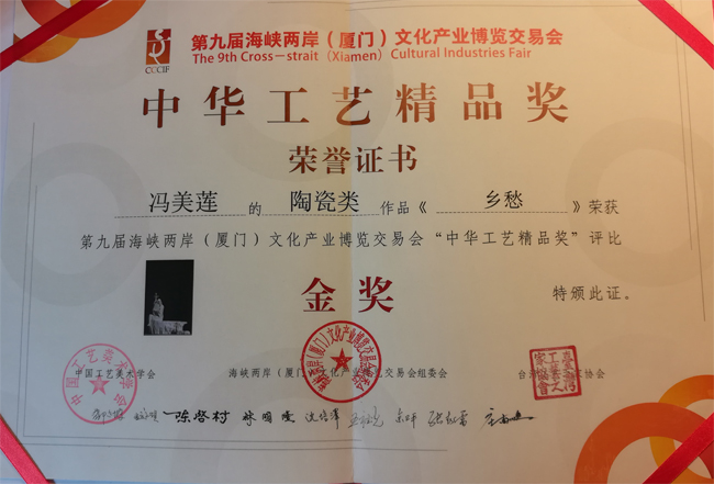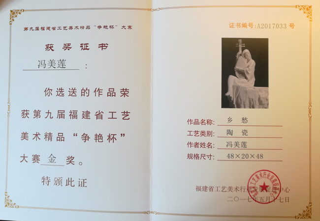 2017年《乡愁》获得第九届福建省工艺美术精品 "争艳杯"金奖