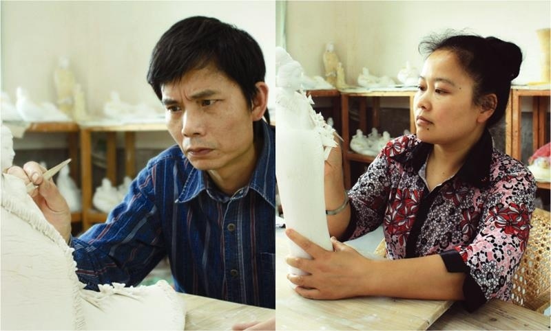 夫妇俩联袂创作的“三态祥云观音”69套认筹于瓷观音研究中心祥云观音寺,每套认捐30万。夫妇从不间断对德化传统瓷艺的研究、传承及创新,潜心投入继承德化瓷雕优秀传统和开发创新研究,力争与时俱进,在弘扬优秀艺术传统中,大胆创作设计,不同的题材运用不同的手法,准确地刻画出人物的神情。