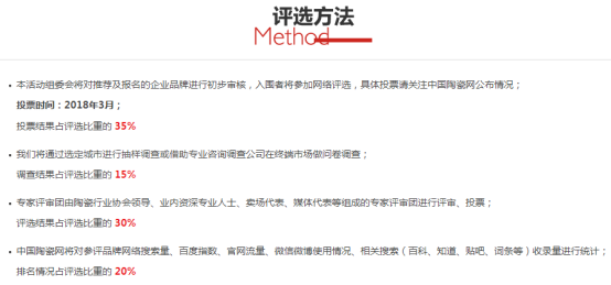 4月11日,最终通过评选,入选2018年度中国建筑卫生陶瓷十大品牌榜的品牌,将在北京国家会议中心揭晓,并由组委会授予表彰。