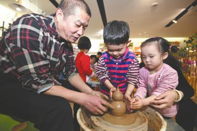 昨天,著名雕塑家闵伟在耐心地指导小朋友做陶艺。当日,由闵伟亲自授课的儿童陶吧在益初国际儿童俱乐部亮相。陶艺制作是手、眼、脑协调互动的过程,儿童的智力发展起源于动作的发展,而学陶艺的过程不仅可以开发幼儿的智力,还可以发展孩子的感知力、观察力和创造力。闵伟作为省陶瓷艺术大师,他希望在益初儿童陶吧内让陶瓷艺术能从小扎根于孩子们心中,让孩子们在陶艺的世界中亲近自然、释放自我、健康成长