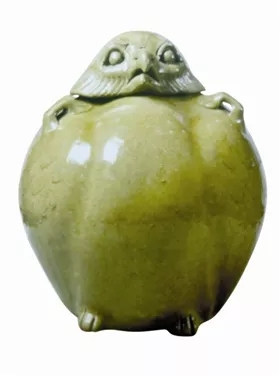在陶器烧造的过程中,古人悟出了制瓷的方法。从商周创烧出原始青瓷,经过工艺的不断改进,到东汉在南方烧出成熟青瓷,其间经历了一千多年的历史。苏州东吴博物馆收藏的青瓷鹰尊,专家们认为是三国东吴时期生产的青瓷精品,被文物部门定级为一级甲等国宝级文物。这件鹰尊在六朝青瓷中十分罕见,显示出魏晋南北朝时期中国青瓷烧造艺术的最高水平,是件难得一见的稀世珍宝。鹰尊通高26.6、底径13.6厘米。鹰体作器身,鹰头为器盖,肩贴四系,肩刻双翼,两爪及尾稳稳着地。釉色莹润,青中泛黄,望上去如同一汪春水映碧荷。整个器型显得十分庄重威严。最具匠心的设计是精雕细刻、形象生动的头部,双目圆睁,灼灼有神,勾喙锐利,羽毛历历。国家博物馆的陶鹰尊开口于背,无盖。而苏州东吴博物馆收藏的青瓷鹰尊,则以鹰头为盖。看去犹如稳稳屹立于高山岩崖之上的一只神鹰,而头部可时时灵活转动,傲视宇宙人间。身静而头动,更显大气、霸气、王者之气,可谓青瓷鹰塑神品!