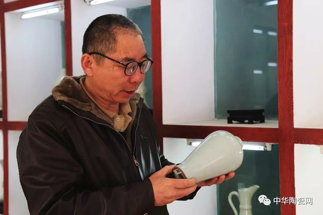 1984年6月,由冯先铭、邓白等34名古陶瓷专家组成的鉴定委员会认为,开封北宋官瓷研究所用河南当地原料烧制出的官瓷作品“釉色如玉,风格逼真,可与故宫博物院、上海博物院等收藏的宋官瓷传世品媲美”。图为注浆