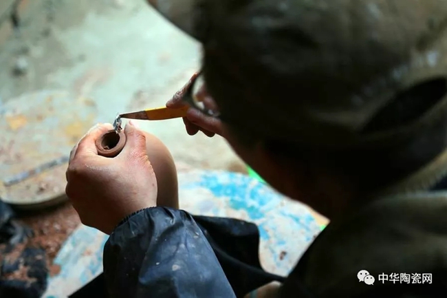 北宋官瓷是为宋代“官、汝、哥、定、钧”五大名窑之一,创建于我国北宋末年,当时宋徽宗为烧制出符合国仪之用的庄重礼器,引入汝瓷及开封东窑等窑口窑系的制作精华,在今河南开封亲自创制的一个青瓷名品。官瓷是我国陶瓷史上第一个由朝廷投资兴建的“国有”窑口,也是第一个被皇帝个人垄断的瓷器种类。图为人工出浆