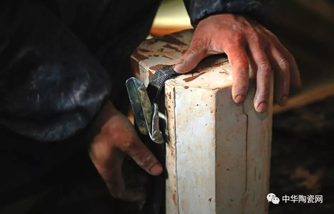 于乐土说,官瓷作品当时作为国仪之用的礼器,依据三代青铜器和玉器造型,有四个“非常”——第一个非常,皇家垄断,成就高,收藏范围小;第二个非常,诞生时机不巧,赶上金人入侵,烧造不足20年,存世量小;第三个非常,器形合乎法度,礼器全有出处,不能用不可控的手工拉坯,必须精制模具;第四个非常,风格厚重,工艺复杂,需要多遍施釉。图为脱模