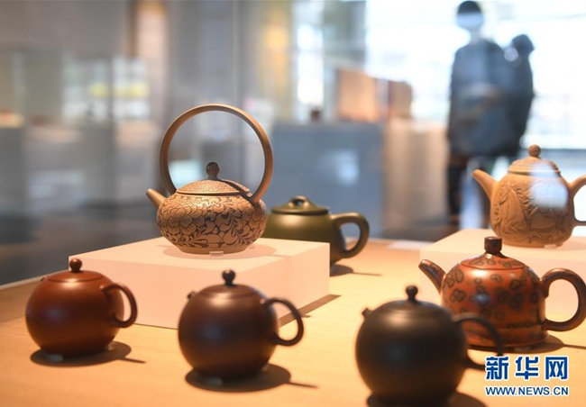 这是3月31日在莺歌陶瓷博物馆拍摄的宜兴紫砂壶。莺歌古镇位于台湾新北市,当地设有陶瓷博物馆、陶瓷主题公园和陶瓷老街等,有“台湾景德镇”之誉,是感受陶瓷文化的好去处。新华社记者林善传摄