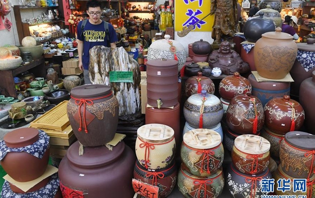 这是3月31日在莺歌古镇陶瓷老街一家陶瓷店拍摄的各式陶器。莺歌古镇位于台湾新北市,当地设有陶瓷博物馆、陶瓷主题公园和陶瓷老街等,有“台湾景德镇”之誉,是感受陶瓷文化的好去处。新华社记者林善传摄