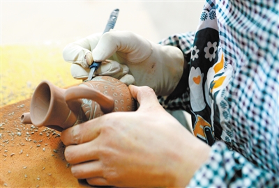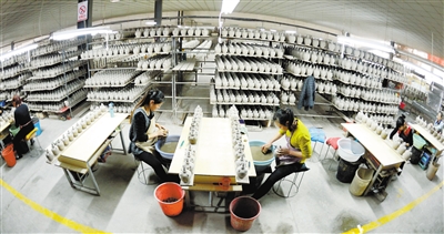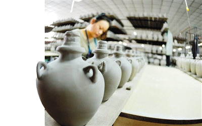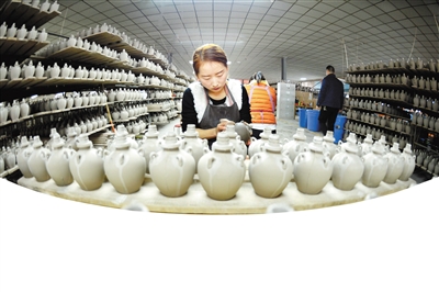 近日,在武威市夏王陶瓷工艺制品有限公司,工人们制作西夏瓷器风格酒瓶配件。甘肃武威曾是西夏的辅郡,当地出土的西夏瓷器及西夏碑等器物,以其深厚的文化沉淀见证了西夏文化的辉煌。
