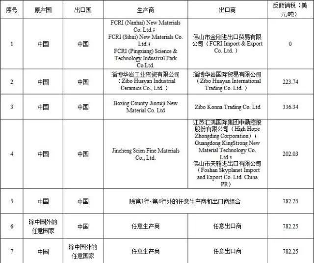 3月26日,印度商工部发布公告称,决定对原产于或进口自中国的陶瓷辊( Ceramic Roller)作出反倾销肯定性终裁,裁定原产于或进口自中国的涉案产品存在倾销行为并对印度国内产业造成了实质性损害,故建议对涉案产品征收0美元/吨~ 782.25美元/吨的反倾销税,有效期为5年。涉案企业包括:佛山市金刚进出口贸易有限公司、淄博华岩国际贸易有限公司、江苏汇鸿国际集团中鼎控股股份有限公司等。