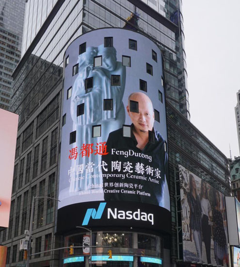 从2018年4月19日起,“ichina1爱陶瓷”中国当代陶瓷艺术家冯都通先生亮相美国纽约时代广场,登上了素有“世界第一屏”之称的纳斯达克大屏幕,全天候连续滚动播放二天。