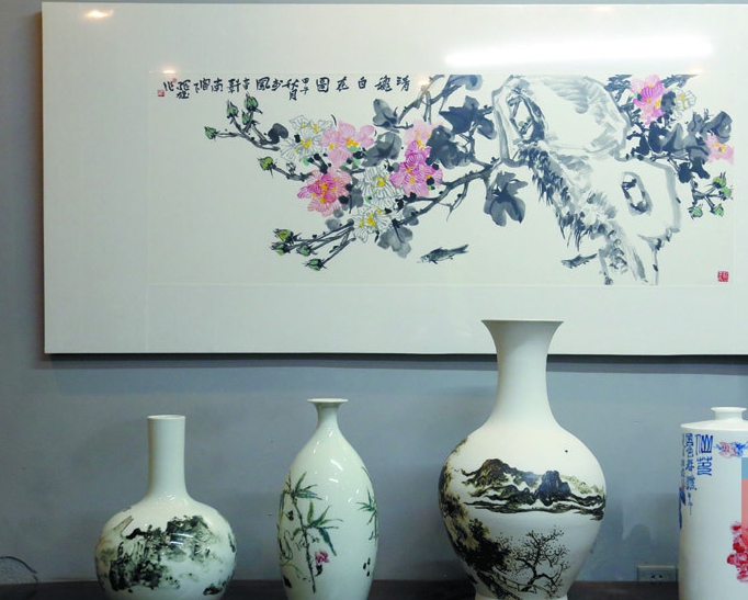 “以前用的都是景德镇的陶瓷制作技术,每次去参赛都会被误解是景德镇陶瓷,我想做一种属于广西的美术陶瓷。”但怎样才能突出广西本地特色呢?杨纲雄一直在思考,也一直在尝试。他去采购宾阳的瓷泥,在瓷器上作画,把现代色彩和传统的山水画相结合,创作出来的作品在西安参赛获奖。