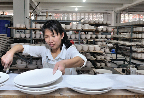 “目前,企业发展面临的最大瓶颈是有订单,却招不到工人。”陈志强谈起招工问题,显得有些无奈。陶瓷企业是劳动密集型企业,在生产自动化程度不高的情况下,对一线工人的需求量很大。近年来,到德化的务工人员明显减少,本土年轻一辈又多到大城市工作,陶瓷企业招工问题一年比一年突出。为了留住工人,今年春节一过,陈志强便和车间主任提着礼物和现金红包到工人家里拜访慰问,大打人情牌。