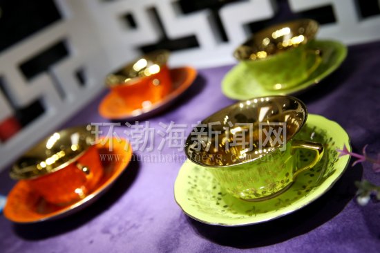 走进展厅,简洁大方的卫生瓷、精美华丽的日用瓷、花样繁多的建筑瓷、明净素雅的艺术瓷,千余件陶瓷制品让人目不暇接,深切地感受到了唐山陶瓷的魅力。在展厅中,一套纹饰精美的骨质瓷制品十分显眼,这就是在首届丝绸之路(敦煌)国际文化博览会中大放异彩,也是会议唯一的指定国宴用瓷——唐山红玫瑰设计制作的“敦煌飞天”。