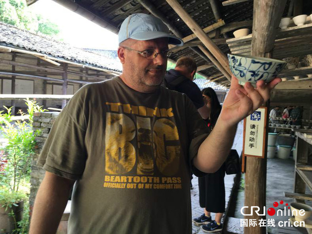 景德镇就是景德镇,对于来到这里的游客来说,不体验一下陶瓷制作是不算来过景德镇的。在景德镇陶瓷民俗博物馆里,游客们可以体验整个古法制瓷的几个步骤。我们这些外籍记者也都尝试做了一下瓷器坯子,特别是与我同行的德语部同事尼尔斯,他非常享受学习做瓷坯的过程。国际在线网站的多语种客户端ChinaNews还对我们在这里体验的过程做了网络直播。