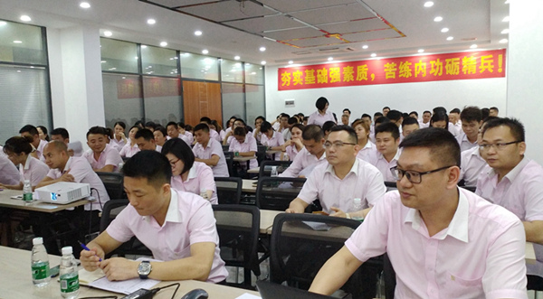 随后,企业营销二部总经理邱国胜就建筑陶瓷发展史、终端渠道发展现状等方面与大家进行了分析讲解。邱总表示,2018年企业围绕产品、品牌形象、营销模式三方面进行升级,我们要紧跟企业发展思路,以新态度、新思维开展各项营销工作。在终端建设方面,他指出,对于终端客户来说必须建立专卖店,才能立足长久发展,才能搭建完善的营销网络。他鼓励全体销售人员一定要与客户.