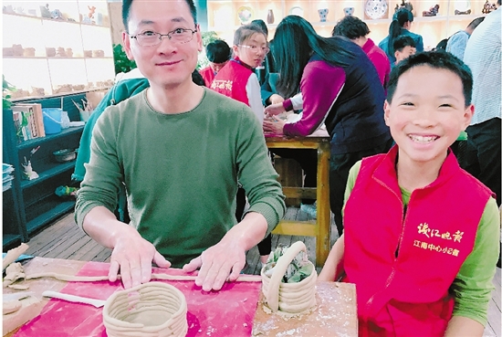 摆在我们面前的有好多胚模,分给各个小记者们,做法也有很多种,有手工制作的也有机制的,老师今天教小记者们一种“搓条法”的花瓶制作,然后陶泥在小朋友手里开始慢慢地搓成条状,围在事先印好的图形上,越叠越高,形成一个花瓶,这就是“搓条法”,然后给我整形,刻花,上釉,这几个步骤给我打扮完成后他们狠心把我放进了1150℃的烧炉里历练了10多个小时,我从一个丑小鸭飞升变成了白天鹅,打开炉门的一刹那我迫不及待地完美绽放了我自己。小记者们在老师的帮助下看到自己的作品感到非常惊艳,而我亦是静悄悄地在那里释放属于我自己的那份美,以及中华五千年的悠悠历史文化沉淀!