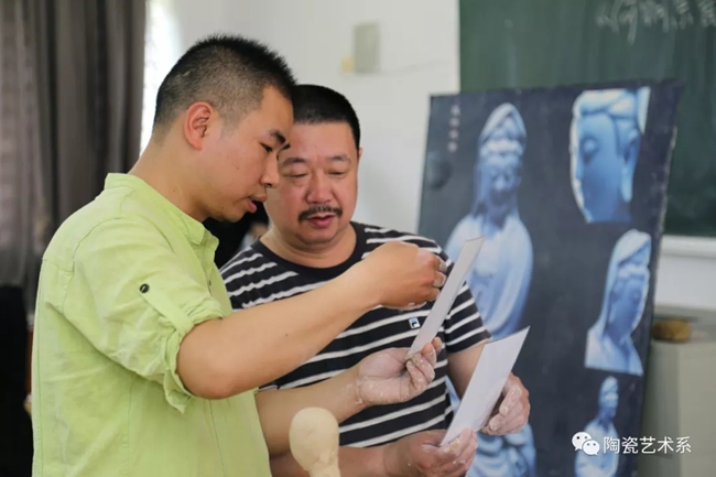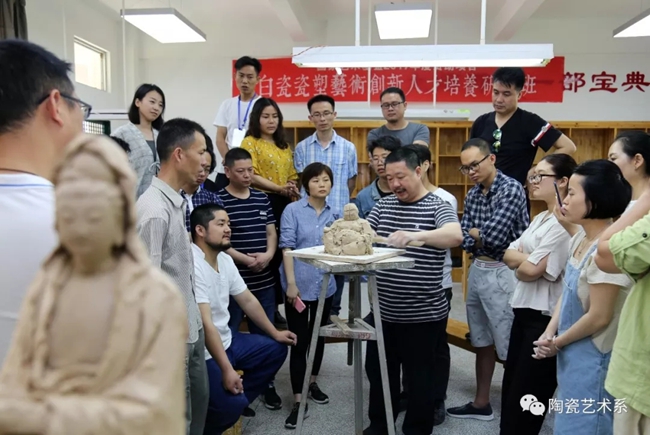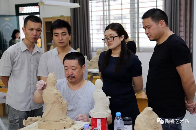《何朝宗瓷塑临摹》课程为期14天,采用双大师授课方式,即每个课堂同时二个大师授课,通过大师现场演示、逐一辅导、共同讨论、作业评析等环节,强化动手训练,让学员在短时间内掌握德化传统瓷塑技艺。