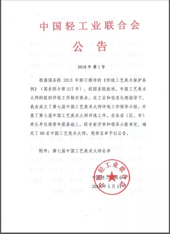 陈明良,在2018年第五届中国工艺美术大师获评。