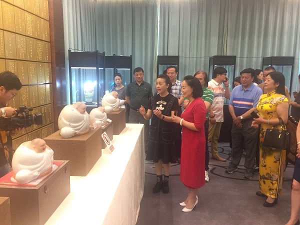在粉妆玉砌的展厅中,一件件璀璨的玉石精品,一对对耀眼的珍贵瓷瓶和一幅幅风光无限的瓷板画无不令人目不暇,展品既有南京市宝缘斋博物馆收藏的“玉树临风”“金树开花”等玉雕数十件,又有景德镇国家级大师刘远长、赖德全、于长征等的“金碧辉煌”瓷瓶、哈哈罗汉、味味瓷塑和春夏秋冬瓷板画等300多件。