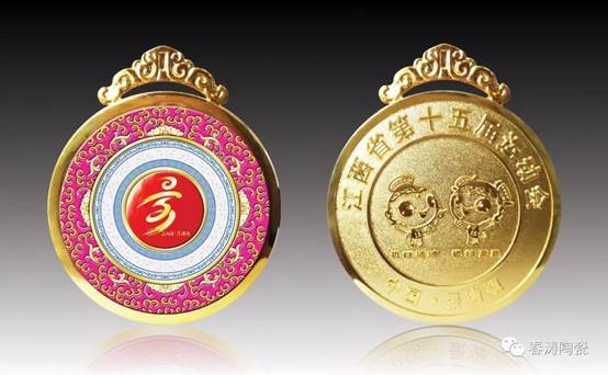江西省第十五届运动会将于2018年10月在景德镇市举行。这是建国以来,景德镇市首次举办的省级大型综合体育盛会。2017年5月,作为东道主所在地的企业——景德镇市春涛陶瓷包装有限公司联合景德镇陶瓷大学设计艺术学院组成设计创意团队,商讨如何利用自身设计与开发优势免费为此届省运会设计具有景德镇特色的陶瓷金、银、铜奖牌及系列奖励用品,为此次运动会的成功举行做出贡献。