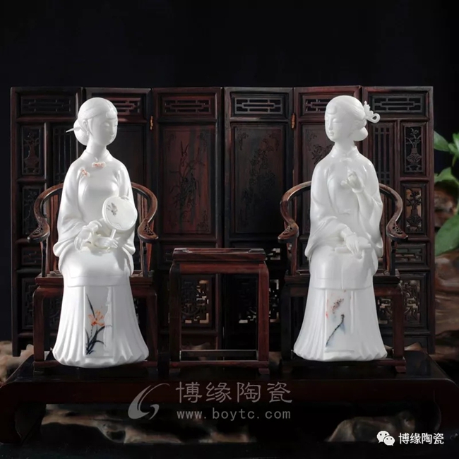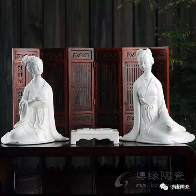 “仕女”在当代德化瓷坛中,更有不少艺术家以仕女或古代著名女性为题材创作了许多作品,有的温文尔雅、有的美丽聪慧、又有的含情脉脉,以下为博缘陶瓷的部份德化白瓷仕女作品欣赏: