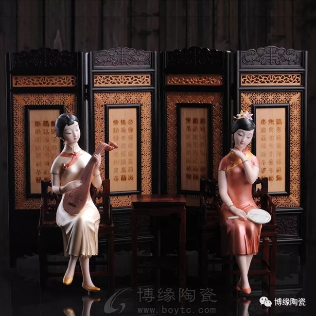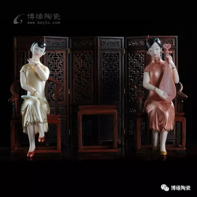 “仕女”是人物类陶瓷作品常见的题材之一,“仕女”本意是指官宦家的女子,而在工艺美术中是泛指所有古装青年女子。还有别称为“美女”或“古美”,即古代美人。这一名称包括了我国神话传说、历史传记和小说戏曲中的古装女子形象,比如“嫦娥”、“西施”、“杨贵妃”、“王昭君”以及《红楼梦》中众多的女子等等,都是脍炙人口的、为大众所喜闻乐见的仕女题材。